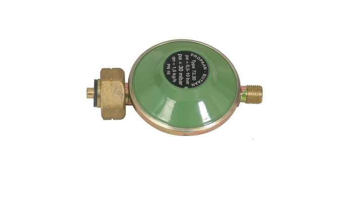 - Universele gasdrukregelaar. Deze kunt u gebruiken voor propaangasflessen van kunststof en staal. Ze zijn leverbaar voor gasapparatuur met een werkdruk van 30 Mbar of 50 Mbar. U draait de regelaar aan de gaskraan van de gasfles.